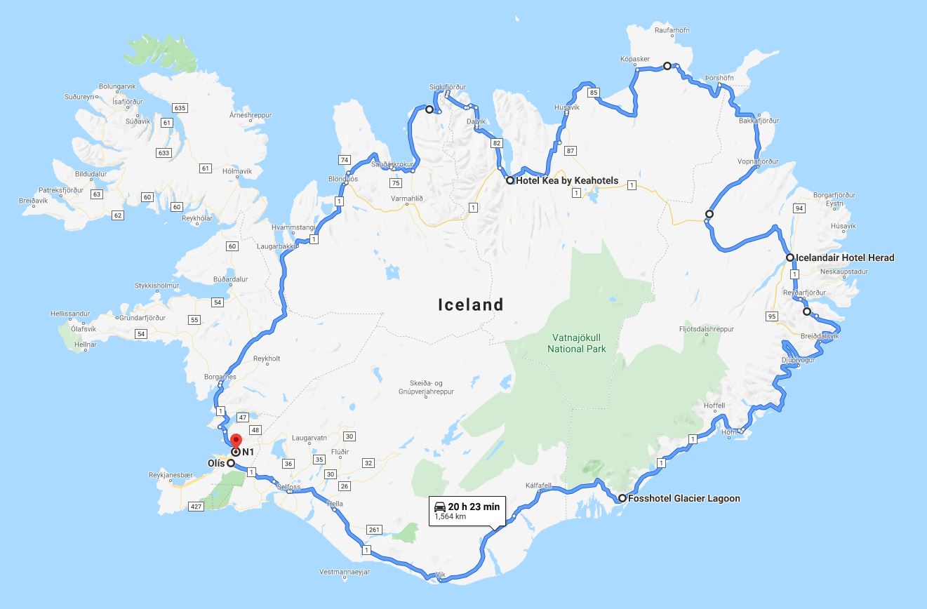 Reykjavík – Hnappavellir í Öræfum